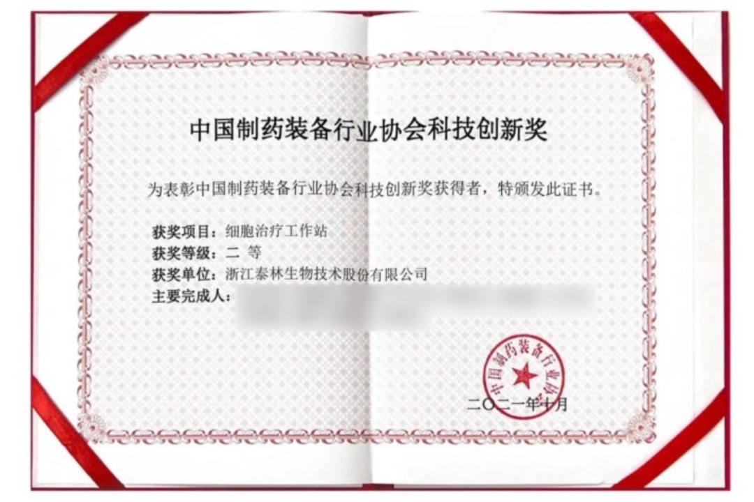 泰林生物榮獲2021中國制藥裝備行業協會科學技術創新獎
